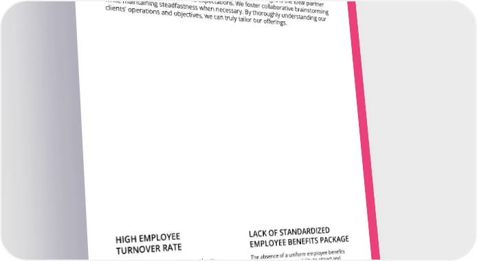THE MOST COMMON CHALLENGES WE FACE With our extensive experience and exclusive products, Starlight is the ideal partner for companies aiming to exceed expectations. We foster collaborative brainstorming while maintaining steadfastness when necessary. By thoroughly understanding our clients' operations and objectives, we can truly tailor our offerings. HIGH EMPLOYEE LACK OF STANDARDIZED TURNOVER RATE EMPLOYEE BENEFITS PACKAGE The absence of a uniform employee benefits Concerns over job security arise due to package hinders your ability to attract and inadequate health benefits coverage for retain top talent. Establishing a standardized employees, contributing to escalating package not only enhances your competitive healthcare costs and driving higher turnover edge but also fosters employee loyalty. HPKS rates. Employees are increasingly drawn to specializes in crafting customized benefits firms offering comprehensive benefits packages that align with your organizational packages. HPKS is committed to mitigating goals and employee needs. turnover risks by providing holistic and adaptable employee benefits solutions.