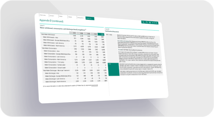 Table 17 Water withdrawal, consumption, and discharge detail (megaliters) 20 FY17 FY18 FY19 FY20 FY21 Total Water Withdrawal 5,148 6,719 7, 5 0 5 7,618 7,657 Water Withdrawals – Asia 973 1,244 1,482 1,533 1,841 Water Withdrawals – Europe, Middle East, Africa 711 851 1,116 1,434 1,170 Water Withdrawals – Latin America 93 115 114 109 179 Water Withdrawals – North America 3,372 4,509 4,793 4, 543 4,467 Total Water Consump tion 1,913 3,326 3, 946 3,967 4,478 Water Consumption – Asia 422 617 824 933 1,129 Water Consumption – E urope, Middle East, Africa 190 383 524 698 6 14 Water Consumption – Latin America 27 66 71 73 125 Water Consumption – North America 1,275 2,259 2,527 2,262 2,610 Water Consumption - Third-party 1,885 3,292 3,913 3,940 4,469 Water Consumption – Surface water 25 30 30 25 4 Water Con sumption – Ground water 3 4 3 2 5 Total Water Discharges – Municipal Treatment 3,236 3,393 3,559 3, 651 3,179 Water Discharges – Asia 551 627 658 600 712 Water Discharges – Eur ope, Middle East, Africa 521 468 591 735 556 Wat er Discharges – Latin America 67 48 43 35 54 Water Discharges – North America 2,097 2,250 2,266 2,281 1,857 20 For more information on water data, please see Microsoft's CDP Water Security response at www.cdp.net . Table 18 Verification/Assurance FY17 – FY20 Data for this period of time was third party verified by APEX using a limited level of assurance. Below please find the criteria used to measure the carbon, energy and water information: For carbon and energy: World Resources Institute (WRI)/World Business Council for Sustainable Development (WBCSD) Greenhouse Gas Protocol, Corporate Accounting and Reporting Standard, revised edition, including Scope 2 Guidance amendment (Scope 1 & 2); WRI/WBCSD Greenhouse Gas Protocol Corporate Value Chain (Scope 3) Accounting and Reporting Standard (Scope 3) For water: CDP Water Security Reporting Guidance For all years, the scope of the verification included GHG emissions for Scope 1, Scope 2, Scope 3 business air travel, total energy consumption, total electricity consumption, total renewable electricity consumption, total offsets purchased, total water withdrawals, total water consumption, and total water discharges. For FY19 and FY20, the rest of Scope 3 category emissions identified as relevant were also included. Latest data adjustments highlighted in this report made to historic data were outside of the scope of these previous years’ review. FY21 Deloitte & Touc he LLP performed a review engagement on management’s assertion that the specified information included in Section 1 of Appendix D as of and for the fiscal year ended June 30, 2021 is presented in accordance with the criteria set forth in Section 1.10, Reporting criteria. Deloitte & Touche LLP’s review report is included in Section 1.11. Information relating to periods prior to the fiscal year ended June 30, 2021, was not subject to Deloitte & Touche LLP's review and, accordingly, Deloitte & Touche LLP does not express a conclusion or any form of assurance on such information. Appendix D (continued) 116