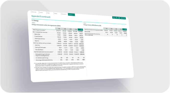 Appendix D (continued) 1.2 Energy Table 6 Energy consumption within the organization (MWh) FY17 FY18 FY19 FY20 FY21 Total Energy Consumption 12 6,756,779 7,781,383 9,249,361 1 0 ,757,1 6 6 13,481,863 Non-renewable fuel consumed 362,408 358,760 439,589 449,304 446,417 Natural Gas 1 07, 6 87 110,863 196,644 218,557 249,443 Crude Oil/Diesel 164,324 152,915 152,034 147,297 143,370 LPG/Propane/Jet Fuel 43,402 50,378 47, 437 40,450 4,245 Gasoline 46,996 44,604 43 , 474 43,000 49,359 Electricity, heating, cooling, and steam 6,394,370 7, 4 2 2 , 6 24 8,809,772 10,307,861 13,035,446 Electricity 6,344,700 7, 357, 636 8 ,74 4 , 83 4 10,244,377 12,969,393 Cooling (Chilled water) 30,121 52,775 52,937 51,026 54,953 Hot water/Steam 19,549 12,213 12,001 12,458 11,100 Total Renewable Electricity Consumption 13 6,104,758 7, 357, 636 8 ,74 4 , 83 4 10,244,377 12,969,393 Renewable Energy Credits and Power Purchase Agreements 6,104,340 7, 357, 2 35 8 ,74 4 , 247 10,244,059 12,969,246 On-Site Renewable Energy 418 400 587 318 147 Percentage of Renewable Electricity 96% 100% 100% 100% 100% 12 Only reported categories and values are applicable to Microsoft's energy consumption. Renewable fuels, electricity sold, heating sold, cooling sold, and steam sold categories are currently not applicable. In gigajoules, total energy consumption equals 48,534,706 GJ, and total fuel consumed equals 1,607,101 GJ. 13 Reported values represent Microsoft's total renewable energy consumption expressed in MWh from on-site, renewable energy credits, and power purchase agreements (PPAs). Specific to PPAs, in FY21 new agreements for approximately 5.8 gigawatts (GW) of capacity were signed, totaling more than 8 GW of renewable energy via PPAs or long-term contracts. Table 7 Energy intensity (MWh/Revenue M$) FY17 FY18 FY19 FY20 FY21 Electricity consumed within the organization (MWh) 6,344,700 7, 357, 636 8 ,74 4 , 83 4 10,244,377 12,969,393 Revenue (M$) 96,571 110,360 125,843 143,015 168,088 Electricity Consumption Normalized by Rev enue (MWh /M$) 66 67 69 72 77 101