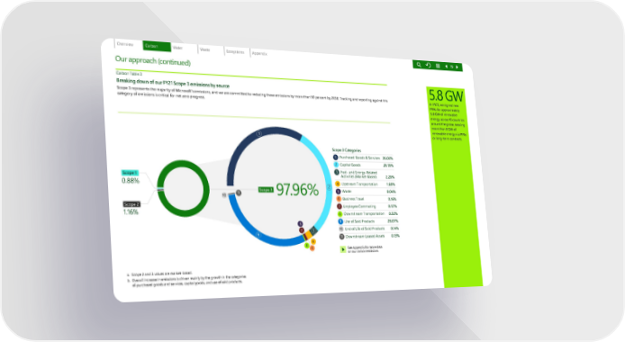 Our approach (continued) 19 Carbon Table 3 Breaking down of our FY21 Scope 3 emissions by source Scope 3 represents the majority of Microsoft’s emissions, and we are committed to reducing these emissions by more than 50 percent by 2030. Tracking and reporting against this category of emissions is critical for n et zero progress. 0.88% Scope 1 1.16% Scope 2 9 7. 9 6 % Scope 3 9 6 1 2 10 11 3 8 5 7 4 Scope 3 Categories 1 Purchased Goods & Services 35.03% 2 Capital Goods 29.70% 3 Fuel- and Energy-Related Activities (Market-Based) 2.20% 4 Upstream Transportation 1.60% 5 Waste 0.04% 6 Business Travel 0.16% 7 Employee Commuting 0.57% 8 Downstream Transportation 0.32% 9 Use of Sold Products 28.07% 10 End of Life of Sold Products 0.14% 11 Downstream Leased Assets 0.13% See appendix for more data on our carbon emissions a. Scope 2 and 3 values are market-based. b. Overall increase in emissions is driven mainly by the growth in the categories of purchased goods and services, capital goods, and use of sold products. 5.8 GW In FY21, we signed new PPAs for approximately 5.8 GW of renewable energy across 10 countries around the globe, totaling more than 8 GW of renewable energy via PPA s or long-term contracts.