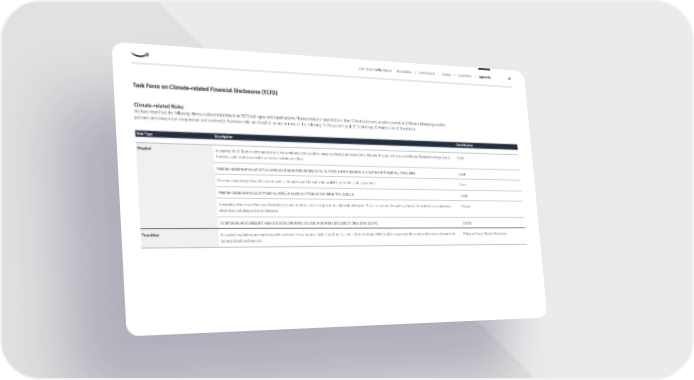 Climate-related Risks: We have identified the following climate-related risks based on TCFD risk types and classifications. Physical risks are classified as either: 1) Acute (extreme weather events) or 2) Chronic (changing weather patterns and rising mean temperature and sea levels). Transition risks are classified as one or more of the following: 1) Policy and Legal; 2) Technology; 3) Market; and 4) Reputation. Risk Type Description Classification Physical Increasing risk of flood or damages due to climate-related events could increase our physical and operational risks and the cost to insure our buildings. Repeated damage due to flooding could result in an inability to insure existing buildings. Acute Weather-related events such as hurricanes could cause asset damage to our buildings, prevent deliveries to customers, and negatively impact sales. Acute Extreme and prolonged weather events such as droughts could impact water availability for data center operations. Acute Weather-related events could impact our ability to access raw materials and deliver final products. Acute A warming climate could increase thermal stress and outdoor associate exposure to criteria air pollutants. These stresses could negatively impact the health of our employees, close sites, and delay customer deliveries. Chronic As temperatures increase and water availability decreases, we could experience rising costs for data center cooling. Chronic Transition Increasing regulations and evolving public preference may require a faster transition to a low-carbon economy, which could increase operating costs and/or reduce demands for some products and services. Policy and Legal; Market; Reputation Task Force on Climate-related Financial Disclosures (TCFD) 2021 Sustainability Report Introduction I Environment I Society I Governance I Appendix 91