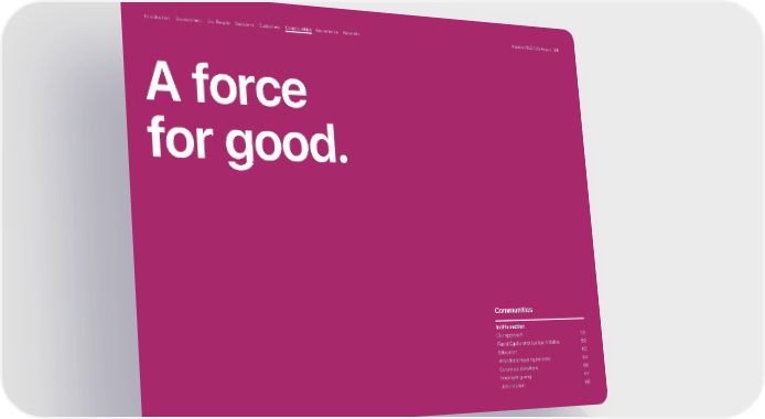 Communities In this section Our approach 59 Racial Equity and Justice Initiative 60 Education 62 Affordable housing initiative 64 Corporate donations 65 Employee giving 67 Job creation 68 A force for good. Appendix Governance Communities Suppliers Customers Our People Environment Introduction Appleās 2022 ESG Report 58