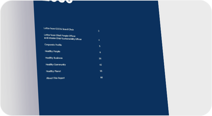 2021 ESG Report Healthy 2030 Letter from CEO & Board Chair 3 Letter from Chief People Officer and Interim Chief Sustainability Officer 4 Corporate Profile 5 Healthy People 6 Healthy Business 26 Healthy Community 42 Healthy Planet 55 About This Report 68 2