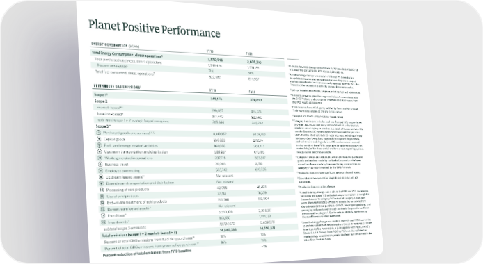 Planet Positive Performance ( ) ENERGY CONSUMPTION MWh FY19 FY21 5 Total Energy Consumption, direct operations 2,570,946 2,605,210 5 In gigajoules, total energy consumption in FY21 equals 9,478,801 GJ, Total purchased electricity, direct operations 1,948,466 1,991,153 and total fuel consumed in FY21 equals 2,296,223 GJ. 6 6 Percent renewable 71% 66% A methodology change was made in FY19 and FY21 inventories to update estimates and emission factors resulting more scope 2 7 Total fuel consumed, direct operations 622,480 614,057 market-based emission than previously reported for FY19. This also impacted the percent of electricity sourced from renewables. 7Fuel use includes natural gas, propane, aviation fuel and vehicle fuel. GREENHOUSE GAS EMISSIONS8 FY19 FY21 8 Starbucks presents greenhouse gas emissions in accordance with the GHG Protocol and uses global warming potential values from 9 Scope 1 349,178 372,020 the IPCC Fourth Assessment. 9 Scope 2 FY21 data has been third-party verified by Burns and McDonnell. 6,9 Their report is available at the end of this report. market-based 396,487 474,774 10 Scope 3 emissions utilize location-based values 9 location-based 877,440 923,483 11 Category 1 emissions includes land use change (LUC) for purchases sub-total scope 1 + 2 market-based emissions 745,665 846,794 of coffee, tea, cocoa and dairy. LUC is defined as a change from 10 one land-use category to another as a result of human activity. We Scope 3 use the Quantis LUC methodology, which accounts for year-to- 1 9,11,12 year, country-level LUC over 20-year intervals, including primary Purchased goods and services 8,143,957 8,128,362 and secondary forest loss; peatland drainage and degradation; 2 Capital goods 250,223 211,674 and soil erosion and degradation. LUC numbers were assumed 3 to stay constant from FY20, as we plan to update our calculation Fuel- and energy-related activities 164,059 203,417 methodologies for these emissions for our next reporting cycle as 4 new guidance becomes available. Upstream transportation and distribution 589,987 676,195 12 5 Category 1 emissions include the emissions from the purchased Waste generated in operations 287,716 283,847 goods and services made by Starbucks Corporation. We have 6 Business travel 26,008 3,766 moved purchases made by licensees for key commodities to 7 category 14 as recommended by the GHG Protocol. Employee commuting 583,742 619,526 13 8 13 Starbucks does not have significant upstream leased assets. Upstream leased assets Not relevant 14 9 Downstream transportation impacts are minimal and not Downstream transportation and distribution Not relevant calculated. 10 15 Processing of sold products 42,055 46,498 Starbucks does not act as a lessor. 11 16 Use of sold products 77,718 78,339 A methodology change was made in the FY19 and FY21 inventories 12 to include the scope 1, 2 and select scope 3 emissions of our global End-of-life treatment of sold products 155,748 155,004 licensed stores’ in category 14, instead of category 3 as in prior 13 15 years. The select scope 3 emissions include the emissions from Downstream leased assets Not relevant these licensed stores’ purchases of food, beverage ingredients, and 14 16 Franchises 3,330,106 2,308,317 packaging not purchased through Starbucks Corporation as these 15 17 are covered in category 1. Due to data availability, purchases by Investments 143,350 1,144,133 Licensed Stores are often estimated. subtotal scope 3 emissions 13,794,670 13,859,078 17 A methodology change was made in the FY19 and FY21 inventories Total emissions (scope 1 + 2 market-based + 3) 14,540,335 14,705,871 to include operational emissions from two joint ventures: (1) North American Coffee Partnership, a joint venture with Pepsi, and (2) 18 Percent of total GHG emissions from fluid dairy purchases 19% 18% Starbucks AiNi Group. From FY20 to FY21, we also updated our 19 methodology for estimating emissions from our investment in the Percent of total GHG emissions from green coffee purchases 16% 14% Valor Siren Venture Fund. Percent reduction of total emissions from FY19 baseline -1%