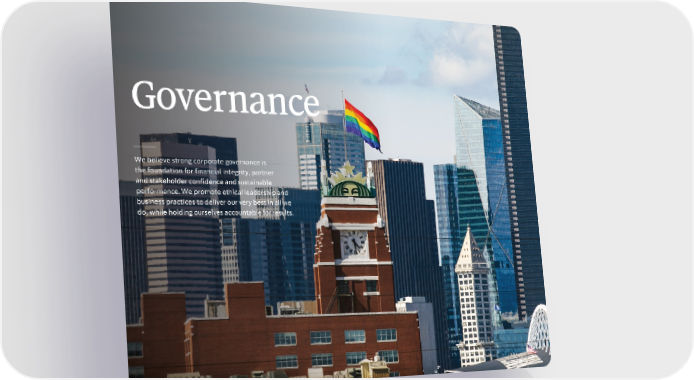 Governance We believe strong corporate governance is the foundation for financial integrity, partner and stakeholder confidence and sustainable performance. We promote ethical leadership and business practices to deliver our very best in all we do, while holding ourselves accountable for results.