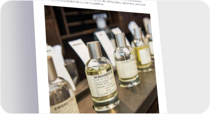 88 SUSTAINABILITY PACKAGING SUSTAINABLE PACKAGING GUIDELINES We remain at the forefront of prestige packaging development and work to influence the broader packaging industry through engagement around innovative and more responsible solutions. We continually anticipate consumer needs, market shifts, and regulatory requirements, and embed learnings and best practice into our internal guidelines. In Le Labo boutiques and at select department store counters, consumers can bring back their perfume bottle (50ml, 100ml and 500ml) and refill it to receive 20% off the retail price.