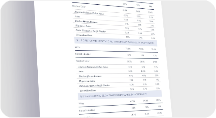 100 JUNE 30 JUNE 30 2021 2021 2020 2020 2019 2019 U.S. CORPORATE EMPLOYEES BY JOB LEVEL Amounts may not sum due to rounding % U.S. VICE PRESIDENT AND ABOVE CORPORATE EMPLOYEES, BY RACE/ETHNICITY White 73.1% 72.8% 75.4% Not self-identified 0.0% 1.9% 1.1% People of Color 26.9% 25.3% 23.6% American Indian or Alaskan Native 0.0% 0.0% 0.0% Asian 13.3% 13.6% 12.9% Black or African American 4.1% 3.9% 3.6% Hispanic or Latino 7.9 % 7.4 % 6.4% Native Hawaiian or Pacific Islander 0.0% 0.0% 0.0% Two or More Races 1.7% 0.4% 0.6% % U.S. DIRECTOR AND EXECUTIVE DIRECTOR CORPORATE EMPLOYEES, BY RACE/ETHNICITY White 70.8% 70.0% 70.8% Not self-identified 0.1% 1.5% 1.3% People of Color 29.2% 28.5% 27.9% American Indian or Alaskan Native 0.1% 0.1% 0.1% Asian 16.5% 16.6% 1 5.9% Black or African American 4.4% 4.0% 3.9% Hispanic or Latino 7. 2 % 7.1% 7.1% Native Hawaiian or Pacific Islander 0.2% 0.1% 0.0% Two or More Races 0.8% 0.7% 1.0% % U.S. MANAGER AND BELOW CORPORATE EMPLOYEES, BY RACE/ETHNICITY White 61.5% 64.0% 64.6% Not self-identified 2.8% 1.8% 1.4% People of Color 35.7% 34.2% 34.0% American Indian or Alaskan Native 0.2% 0.1% 0.1% Asian 14.0% 13.5% 13.3% Black or African American 7.4 % 6.9% 7.0% Hispanic or Latino 12.4% 12.3% 12.1% Native Hawaiian or Pacific Islander 0.3% 0.4% 0.4% Two or More Races 1.3% 0.9% 1.1% METRICS