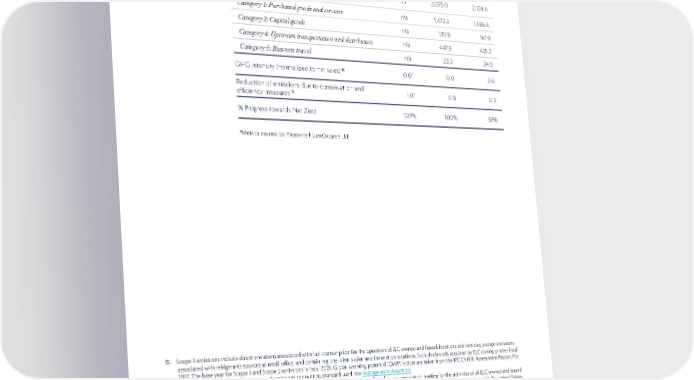 103 METRICS FY21 FY21 FY20 FY20 FY19 FY19 GREENHOUSE GAS (GHG) EMISSIONS (THOUSAND METRIC TONS CO 2 EQUIVALENT) Scope 1 15 24.1 * 2 7. 2 28.9 Scope 2 16 57.0 * 59.5 62.4 Scope 3 for measured categories, by category 1 7 ( FY21 data available in CY22 ) n/a 2,075.0 2,124.6 Category 1: Purchased goods and services n/a 1,473.3 1,486.6 Category 2: Capital goods n/a 130.5 167.9 Category 4: Upstream transportation and distribution n/a 4 4 7.9 435.2 Category 6: Business travel n/a 23.3 34.9 GHG intensity (normalized to net sales) 18 0.0 * 0.0 3.6 Reduction of emissions due to conservation and efficiency measures 19 1.0 * 0.8 0.3 % Progress towards Net Zero 100% 100% 39% *Metrics assured by PricewaterhouseCoopers LLP 15. Scope 1 emissions include direct emissions associated with fuel consumption for the operation of ELC owned and leased locations and vehicles, except emissions associated with refrigerants sources at retail, office, and certain regional distribution and innovation locations. Excludes brands acquired by ELC during or after fiscal 2021. The base year for Scope 1 and Scope 2 emissions is fiscal 2018. Global warming potential (GWP) factors are taken from the IPCC’s fifth Assessment Report. For additional information on emissions and emissions accounting standard used, see Management Assertion. 16. Scope 2 emissions include indirect emissions associated with purchased electricity, purchased steam, and district heating for the activities of all ELC owned and leased locations. Excludes brands acquired by ELC during or after fiscal 2021. Scope 2 refers to market-based Scope 2 emissions. For electricity purchased in the United States, emissions factors taken from the most recent EPA Emissions & Generation Resource Integrated Database (eGRID) are used to calculate GHG emissions. Province or territory-specific factors from Environment Canada and the Australian Government are applied to Canadian and Australian locations respectively. Country-specific emissions factors are applied at all other locations including utilizing residential mix emission factors for locations in the European Union. Fiscal 2021, Scope 2 location-based emissions totaled 54.0 thousand metric tons CO 2 equivalents. For additional information on emissions and emissions accounting standard used, see Management Assertion. 17. Measured categories include Categories 1, 2, and 4 as reflective of significant impact, with Category 6 reflecting stakeholder interest. Category 1 includes Raw Materials, Packaging, Third-Party Manufacturers (TPMs), and indirect spend; Category 2 includes only Capital Goods; Category 4 includes Inbound and Outbound Transportation and Distribution arranged for by ELC; Category 6 includes Air Travel, Hotel Stays, Rail, and Hire Car, but excludes out of pocket employee travel expenses. All other Scope 3 Categories are considered de minimis; please refer to ELC’s CDP Climate Response for additional information. Excludes emissions associated with brands acquired by ELC during or after fiscal 2020 and other acquisitions made prior thereto that have not yet been integrated into the relevant ELC systems. Full Scope 3 data for fiscal 2021 not available at time of publication due to limitations associated with the timing of suppliers’ release of value chain data. 18. GHG intensity is calculated based on Scope 1 and Scope 2 market-based emissions including renewables. 19. Total estimated annual savings from projects implemented in the reporting period. Total energy and GHG emission savings are attributed to the year in which projects launched in, regardless of timing during the fiscal year. Fiscal 2020 value restated due to updated emission factors. For additional information, see Management Assertion.