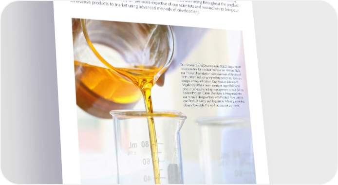 79 SUSTAINABILITY PRODUCT FORMULATION OUR MANAGEMENT APPROACH Consumers around the world trust our brands to deliver the best beauty performance and to do so safely. We are committed to formulating with people and the planet as our priorities, considering safety, performance, sustainability, green chemistry, and overall well-being throughout the product development process. We rely on the deep expertise of our scientists and researchers to bring our innovative products to market using advanced methods of development. Our Research and Development (R&D) department is responsible for product formulation. Within R&D, our Product Formulation team oversees all facets of formulation including ingredient selection, formula design, and qualification. Our Product Safety and Regulatory Affairs team manages ingredient and product safety, including management of our Safety Review Process. Green chemistry is integrated into our formula design efforts with Product Formulation and Product Safety and Regulatory Affairs partnering closely to enable this work across our portfolio.