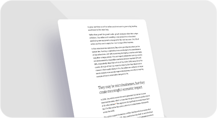 to grow, but three out of five sellers would not want to grow so big that they would need to hire more help. Rather than growth for growth’s sake, growth strategies reflect their unique ambitions. Etsy sellers rank launching a new product line or brand and purchasing new equipment as top goals for the next two years. Only 6% of sellers say they want to apply for a loan to expand their business. In their microbusiness operations, Etsy sellers prioritize more than just the bottom line. Running a creative business contributes to the overall balance of Etsy sellers lives, with 68% maintaining that having a creative outlet helps keep them a happy person. The vast majority believe that running a socially and environmentally responsible creative business is important (87% and 88%, respectively). More than a third of Etsy sellers (34%) always know the country of origin of their raw materials, implying that they take an active interest in their supply chains. In this, Etsy sellers are a reflection of larger trends towards more socially responsible business, and offer an inspiring example of how to make both a living and a life. They may be microbusinesses, but they create meaningful economic impact. In 2016, Etsy sellers across the world generated $2.8 billion in gross merchandise sales, which is more than the gross domestic product (GDP) of 29 other nations.12 This represents the significant economic impact from the 1.7 million active Etsy sellers–primarily microbusinesses–that operate across the world. Etsy sellers support themselves and their families with income from their creative business. For 32%, their creative business (both on and off of Etsy) is their sole occupation. In fact, Etsy sellers’ creative businesses provide an important source of supplemental income, contributing 13%, on average, to total household income. Nearly half (49%) of sellers use this income to $2.8B pay for necessary household expenses, including utility bills and rent. in gross merchandise sales Income from these creative businesses has a significant impact on generated by Etsy sellers individuals and families, and is valued differently during different stages of worldwide life. For example, Etsy sellers under the age of 35 are more likely to prioritize savings: 41% reported putting the income towards savings accounts, compared to 30% generally. Beyond individual households, Etsy sellers contribute to the broader economy by creating jobs and supporting traditional manufacturing and retail business. Nearly a quarter of sellers (23%) have people (paid and 7 2017 Seller Census Report