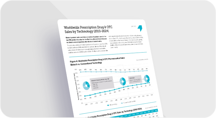 Worldwide Prescription Drug & OTC part 1 of 2 Sales by Technology (2010-2024) Biotech product sales overtake conventional product sales in the sixth largest seller of biotech products in 2024, mostly driven by top 100 product by sales for the 昀椀rst time. Merck & Co is forecast an increase in Trulicity forecast. Merck & Co, with a CAGR of 10.9%, to climb to second position after Roche in biotech sales. is forecast to be the best performer in the next six years gaining The industry uptake of biotech products is forecast to rise from 28% 昀椀ve positions in the ranking from 2018. AbbVie has the lowest to 32% between 2018 and 2024. In contrast, the top 100 product CAGR (-4.9%) of the top 10 companies, primarily due to Humira’s sales share of biotech and conventional products is forecast to patent expiry. stabilise around a 50/50 split in 2024. Eli Lilly is set to become the Figure 4: Worldwide Prescription Drug & OTC Pharmaceutical Sales: Biotech vs. Conventional Technology Source: EvaluatePharma, May 2019 90% 82% 82% 80% 79% 78% 77% 80% 75% 74% 72% 71% 70% 70% 69% 69% 68% 70% 60% Biotech Products Within Top 100 50% 34% Rapid increase in share of Top 100 products: 2024 Split: 66% - 2010: 34% 47% 53% Biotech: n=50 (avg. $4.1bn) 50% 50% 40% - 2018: 53% Conv.: n=50 (avg. $3.2bn) - 2024: 50% 30% 29% 30% 30% 31% 31% 32% 20% 26% 28% 21% 22% 23% 25% Technology % of Prescription & OTC Sales10%18%18%20% 0% 2010 2011 2012 2013 2014 2015 2016 2017 2018 2019 2020 2021 2022 2023 2024 Biotechnology Conventional/Unclassified Table 4: Worldwide Prescription Drug & OTC Sales by Technology (2010-2024) Source: EvaluatePharma, May 2019 Technology 2010 2011 2012 2013 2014 2015 2016 2017 2018 2019 2020 2021 2022 2023 2024 Biotechnology 18% 18% 20% 21% 22% 23% 25% 26% 28% 29% 30% 30% 31% 31% 32% Conventional/Unclassi昀椀ed 82% 82% 80% 79% 78% 77% 75% 74% 72% 71% 70% 70% 69% 69% 68% Total Prescription & OTC Sales 100% 100% 100% 100% 100% 100% 100% 100% 100% 100% 100% 100% 100% 100% 100% WW Sales ($bn) Technology 2010 2011 2012 2013 2014 2015 2016 2017 2018 2019 2020 2021 2022 2023 2024 Biotechnology 129 140 151 163 176 181 199 217 243 258 277 300 327 356 388 Conventional 439 463 441 433 444 438 443 444 455 455 478 511 547 584 626 Other Unclassi昀椀ed Sales 154 169 166 173 174 163 166 164 165 166 174 182 191 200 209 Total Prescription & OTC Sales 722 771 758 769 794 782 808 825 864 880 929 992 1065 1140 1222 ® 12 EvaluatePharma World Preview 2019 Copyright © 2019 Evaluate Ltd. All rights reserved.