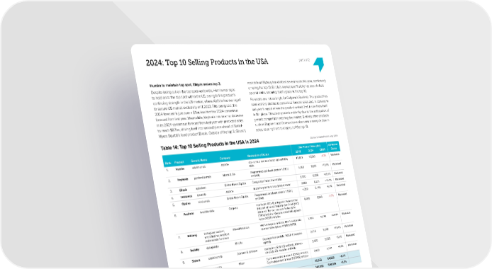 2024: Top 10 Selling Products in the USA part 1 of 2 Humira to maintain top spot, Eliquis makes top 3. market lead Biktarvy has climbed several spots this year, comfortably Despite losing out on the top spot worldwide, Humira manages entering the top 10. Eli Lilly’s market lead Trulicity has also climbed to hold on to the top spot within the US, owing to the product’s several ranks, securing itself a place in the top 10. continuing strength in the US market, where AbbVie has managed Forecasts are not so bright for Celgene’s Revlimid. The product has to secure US market exclusivity until 2023. This being said, the seen a sharp decline in consensus forecast sales and, in contrast to 2024 forecast is just over a $1bn less that the 2024 consensus last year’s report where the product ranked 2nd, it now 昀椀nds itself forecast from last year. Meanwhile, Keytruda has seen an increase in 6th place. This downgrade is evidently due to the anticipation of in its 2024 consensus forecast from last year with predicted sales generic competition entering the market. Similarly, other products to reach $8.7bn, driving itself into second place ahead of Bristol- such as Dupixent and Ocrevus have also seen a steep decline in Myers Squibb’s lead product Eliquis. Outside of the top 3, Gilead’s sales, causing them to drop out of the top 10. Table 14: Top 10 Selling Products in the USA in 2024 Source: EvaluatePharma, May 2019 USA Product Sales ($m) US Market Rank Product Generic Name Company Mechanism of Action 2018 2024 CAGR Status 1. Humira adalimumab AbbVie Anti-tumour necrosis factor alpha (TNFa) 13,685 10,582 -4.2% Marketed MAb 2. Keytruda pembrolizumab Merck & Co Programmed cell death protein 1 (PD1) 4,150 8,694 +13.1% Marketed antibody 3. Eliquis apixaban Bristol-Myers Squibb Coagulation factor Xa inhibitor 3,760 6,698 +10.1% Marketed 4. Imbruvica ibrutinib AbbVie Bruton’s tyrosine kinase (BTK) inhibitor 2,968 6,221 +13.1% Marketed 5. Opdivo nivolumab Bristol-Myers Squibb Programmed cell death protein 1 (PD1) 4,239 6,146 +6.4% Marketed antibody 6. Revlimid lenalidomide Celgene Interleukin-6 (IL-6) antagonist; Natural killer 6,469 5,840 -1.7% Marketed (NK) cell stimulant; Natural killer T-cell (NKT) stimulant; Tumour necrosis factor alpha (TNFa) inhibitor; Vascular endothelial growth factor (VEGF) inhibitor 7. Biktarvy bictegravir sodium; Gilead Sciences HIV-1 integrase inhibitor; HIV-1 nucleoside 1,144 5,476 +29.8% Marketed emtricitabine; tenofovir reverse transcriptase inhibitor (NRTI) alafenamide fumarate 8. Trulicity dulaglutide Eli Lilly Glucagon-like peptide 1 (GLP-1) receptor 2,516 5,350 +13.4% Marketed agonist 9. Stelara ustekinumab Johnson & Johnson Interleukin-12 (IL-12) antibody; Interleu- 3,469 5,025 +6.4% Marketed kin-23 (IL-23) receptor antibody 10. Ibrance palbociclib P昀椀zer Cyclin-dependent kinase 4 (CDK4) inhibitor; 2,922 4,797 +8.6% Marketed Cyclin-dependent kinase 6 (CDK6) inhibitor Total 45,322 64,829 +6.1% ® Total USA Individual Products Forecast in EvaluatePharma 340,503 550,034 +8.3% Note: Sales represent company reported sales where available, otherwise based on an average of equity analyst estimates. ® World Preview 2019 Copyright © 2019 Evaluate Ltd. All rights reserved. 24 EvaluatePharma