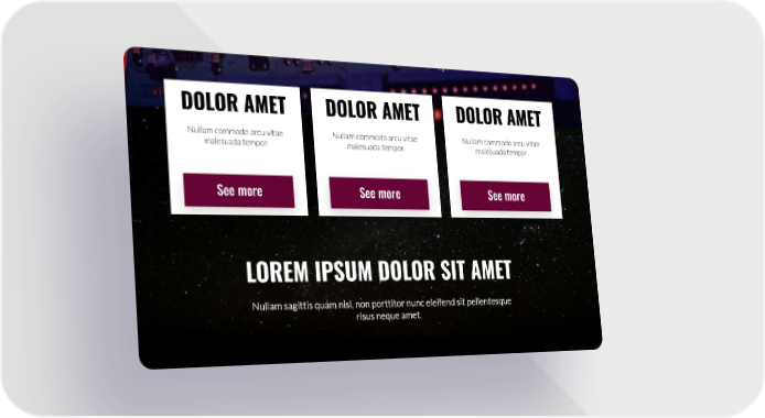 DOLOR AMET DOLOR AMET DOLOR AMET Nullam commodo arcu vitae Nullam commodo arcu vitae Nullam commodo arcu vitae malesuada tempor. malesuada tempor. malesuada tempor. See more See more See more LOREM IPSUM DOLOR SIT AMET Nullam sagittis quam nisl, non porttitor nunc eleifend sit pellentesque risus neque amet.