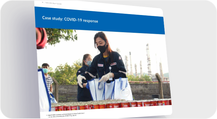 Case study: COVID-19 response ExxonMobil volunteers worldwide helped distribute food to local communities affected by the COVID-19 pandemic. 34 | Sustainability Report Highlights