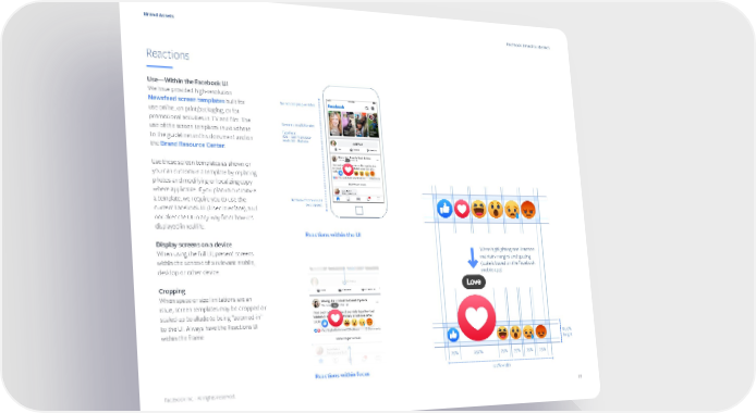 Brand Assets Facebook Brand Guidelines Reactions Use—Within the Facebook UI We have provided high-resolution Newsfeed screen templates built for Do not crop top or sides. use online, on print/packaging, or for promotional activities in TV and film. The Screen ≤ 100% file size use of the screen templates must adhere Typeface: to the guidelines in this document and on iOS – San Francisco Android – Roboto the Brand Resource Center. Use these screen templates as shown or you can customize a template by replacing photos and modifying or localizing copy where applicable. If you plan to customize a template, we require you to use the Bottom of screen can current Facebook UI (User Interface), and be cropped. not alter the UI in any way from how it’s displayed in real life. Reactions within the UI Display screens on a device When highlighting one Reaction When using the full UI, present screens maintain margins and spacing within the context of a relevant mobile, (scale is based on the Facebook desktop or other device. mobile app) Cropping When space or size limitations are an issue, screen templates may be cropped or scaled-up to allude to being “zoomed-in” to the UI. Always have the Reactions UI within the frame. 85.5% height 75% 250% 75% 75% 75% 75% Reactions within focus 100% width Facebook Inc. - All rights reserved. 18