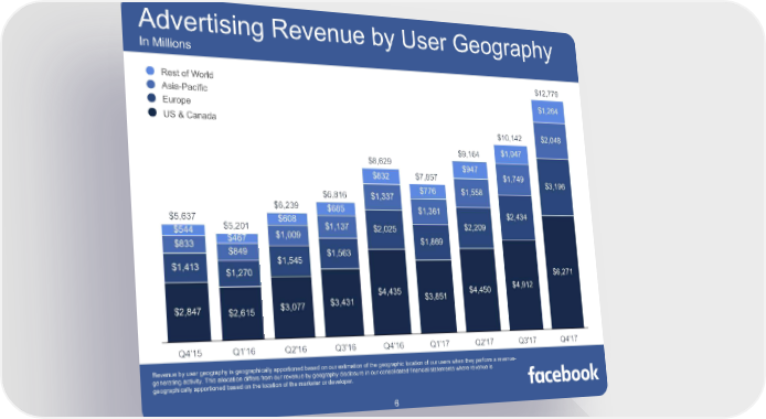Advertising Revenue by User Geography In Millions Rest of World Asia-Pacific Europe US & Canada Revenue by user geography is geographically apportioned based on our estimation of the geographic location of our users when they perform a revenue- generating activity. This allocation differs from our revenue by geography disclosure in our consolidated financial statements where revenue is geographically apportioned based on the location of the marketer or developer. 6