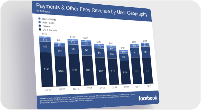 Payments & Other Fees Revenue by User Geography In Millions Rest of World Asia-Pacific Europe US & Canada Revenue by user geography is geographically apportioned based on our estimation of the geographic location of our users when they perform a revenue- generating activity. This allocation differs from our revenue by geography disclosure in our consolidated financial statements where revenue is geographically apportioned based on the location of the marketer or developer. 7
