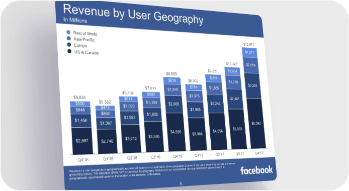 Revenue by User Geography In Millions Rest of World Asia-Pacific Europe US & Canada Revenue by user geography is geographically apportioned based on our estimation of the geographic location of our users when they perform a revenue- generating activity. This allocation differs from our revenue by geography disclosure in our consolidated financial statements where revenue is geographically apportioned based on the location of the marketer or developer. 5