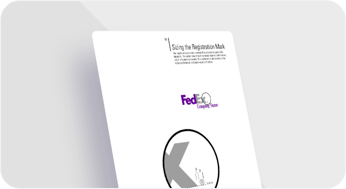 03 Sizing the Registration Mark The registered service mark symbol (®) is attached to each FedEx signature. The symbol should never be smaller than its preferred size, which is 5 points in diameter. It is positioned on the baseline of the FedEx wordmark at a distance equal to its radius. t pt 5 .p 25 Baseline Go to > fedexbrand.com > FedEx Company > Basic Elements > Signature/Logos > Registration Mark