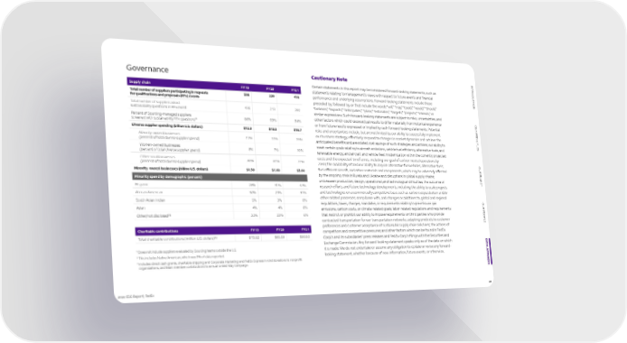 2022 ESG Report | FedEx 41 DATA APPENDIX INTRODUCTION OUR PRINCIPLES OUR PLANET OUR PEOPLE 1 Does not include suppliers evaluated by Sourcing teams outside the U.S. 2 This includes Native American, which was 5% of data reported. 3 Includes direct cash grants, charitable shipping and Corporate Marketing and FedEx Express in-kind donations to nonprofit organizations, and team member contributions to annual United Way Campaign. Supply chain FY19 FY20 FY21 Total number of suppliers participating in requests for qualifications and proposals (RFx) events 508 230 418 Total number of suppliers asked sustainability questions in RFx event 436 213 392 Percent of Sourcing-managed suppliers screened with sustainability RFx questions [1] 86% 93% 94% Diverse supplier spending (billion U.S. dollars) $12.3 $13.3 $18.7 Minority-owned businesses (percent of total diverse supplier spend) 12% 12% 19% Women-owned businesses (percent of total diverse supplier spend) 8% 7% 10% Other small businesses (percent of total diverse supplier spend) 80% 81% 71% Minority-owned businesses (billion U.S. dollars) $1.50 $1.60 $3.60 Minority spend by demographic (percent) Hispanic 28% 31% 47% African American 30% 29% 31% South Asian Indian 5% 3% 8% Asian 4% 4% 8% Other/not disclosed [2] 33% 33% 6% Governance Cautionary Note Certain statements in this report may be considered forward-looking statements, such as statements relating to management’s views with respect to future events and financial performance and underlying assumptions. Forward-looking statements include those preceded by, followed by, or that include the words “will,” “may,” “could,” “would,” “should,” “believes,” “expects,” “anticipates,” “plans,” “estimates,” “targets,” “projects,” “intends,” or similar expressions. Such forward-looking statements are subject to risks, uncertainties, and other factors which could cause actual results to differ materially from historical experience or from future results expressed or implied by such forward-looking statements. Potential risks and uncertainties include, but are not limited to, our ability to successfully implement our business strategy, effectively respond to changes in market dynamics and achieve the anticipated benefits and associated cost savings of such strategies and actions; our ability to meet certain goals relating to aircraft emissions, vehicle fuel efficiency, alternative fuels, and renewable energy, and aircraft and vehicle fleet modernization within the currently projected costs and the expected timeframes, including our goal of carbon neutral operations by 2040; the availability of and our ability to acquire alternative fuel vehicles, alternative fuels, fuel efficient aircraft, and other materials and components, which may be adversely affected by the ongoing crisis in Russia and Ukraine and disruptions in global supply chains; unforeseen production, design, operational, and technological difficulties; the outcome of research efforts and future technology developments, including the ability to scale projects and technologies on a commercially competitive basis such as carbon sequestration and/or other related processes; compliance with, and changes or additions to, global and regional regulations, taxes, charges, mandates, or requirements relating to greenhouse gas emissions, carbon costs, or climate-related goals; labor-related regulations and requirements that restrict or prohibit our ability to impose requirements on third parties who provide contracted transportation for our transportation networks; adapting products to customer preferences and customer acceptance of sustainable supply chain solutions; the actions of competitors and competitive pressures; and other factors which can be found in FedEx Corp.’s and its subsidiaries’ press releases and FedEx Corp.’s filings with the Securities and Exchange Commission. Any forward-looking statement speaks only as of the date on which it is made. We do not undertake or assume any obligation to update or revise any forward- looking statement, whether because of new information, future events, or otherwise. Charitable contributions FY19 FY20 FY21 Total charitable contributions (million U.S. dollars) [3] $73.82 $65.59 $80.83