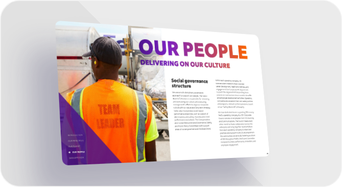 2022 ESG Report | FedEx 24 OUR PEOPLE Social governance structure We use a multi-disciplinary governance approach to support our people. The FedEx Board of Directors is responsible for reviewing and overseeing our culture and evaluating management’s efforts to align our corporate culture with our values and long-term strategy. FedEx also incorporates social-based performance objectives, such as support of DEI initiatives and safety, into executive-level performance evaluations. The Compensation and Human Resources and Governance, Safety, and Public Policy Committees both support areas of social governance at the Board level. Within each operating company, HR oversees plans related to team member career development, health and wellness, and engagement. Our Corporate HR department supports the alignment of all operating team procedures and oversees team member benefits and employee development activities. Operating companies also establish their own safety policies and programs, relevant to their operations, based on our “Safety Above All” philosophy. We have dedicated teams supporting DEI in every FedEx operating company. Our DEI Corporate Council consists of employees from HR, Sourcing, and Communications. The Council meets every other month to foster collaboration across the enterprise and bring together representatives from each operating company to share best practices and support multicultural programs in the communities we serve. By fostering a culture of DEI throughout FedEx, the Council promotes increased business performance, innovation, and employee engagement. OUR PLANET OUR PRINCIPLES OUR PEOPLE INTRODUCTION DATA APPENDIX DELIVERING ON OUR CULTURE