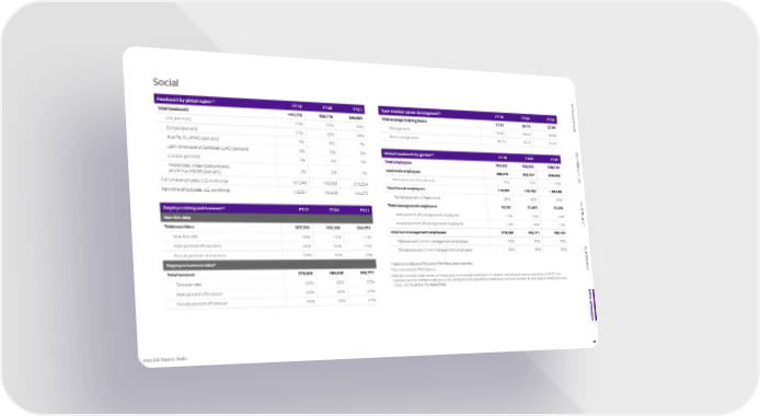 2022 ESG Report | FedEx 39 DATA APPENDIX INTRODUCTION OUR PRINCIPLES OUR PLANET OUR PEOPLE Social 1 Headcount data as of the end of the fiscal years reported. 2 Does not include TNT Express. 3 Attrition includes high volume of temporary, non-exempt employees to support annual peak season operations. In FY21, the turnover rate for exempt employees, non-exempt hourly operations employees, and non-exempt, hourly support employees was 7.6%, 130.7%, and 9.7%, respectively. Headcount by global region [1] FY19 FY20 FY21 Total headcount 444,770 499,718 508,650 U.S. (percent) 71% 71% 70% Europe (percent) 11% 12% 14% Asia Pacific (APAC) (percent) 7% 6% 7% Latin America and Caribbean (LAC) (percent) 6% 5% 5% Canada (percent) 3% 3% 3% Middle East, Indian Subcontinent, and Africa (MEISA) (percent) 2% 2% 1% Full-time employees: U.S. workforce 181,940 188,989 218,254 Part-time employees: U.S. workforce 132,501 165,209 166,075 Employee hiring and turnover [2] FY19 FY20 FY21 New hire data Total new hires 307,396 303,906 366,973 New hire rate 69% 71% 72% Male percent of new hires 66% 65% 71% Female percent of new hires 34% 35% 29% Employee turnover data [3] Total turnover 275,006 280,543 290,777 Turnover rate 62% 65% 57% Male percent of turnover 65% 65% 63% Female percent of turnover 35% 35% 37% Team member career development [2] FY19 FY20 FY21 Total average training hours 37.51 36.70 27.84 Management 45.67 39.19 48.84 Non-management 36.33 36.11 24.87 Global headcount by gender [2] FY19 FY20 FY21 Total employees 403,631 428,936 508,650 Total male employees 288,340 303,154 356,558 Male percent of headcount 71% 71% 70% Total female employees 115,291 125,780 150,656 Female percent of headcount 29% 29% 30% Total management employees 30,381 23,465 19,498 Male percent of management employees 77% 75% 73% Female percent of management employees 23% 25% 27% Total non-management employees 373,250 405,471 489,152 Male percent of non-management employees 71% 70% 70% Female percent of non-management employees 29% 30% 30%