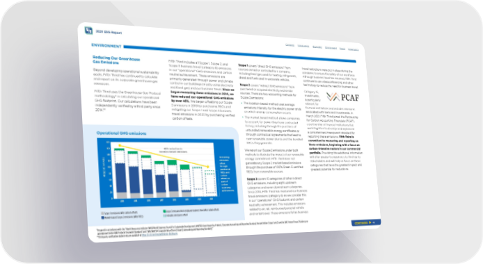 2021 ESG Report ENVIRONMENT Reducing Our Greenhouse Gas Emissions Fifth Third includes all Scope 1, Scope 2, and Scope 3 business travel (category 6) emissions in o u r “operational” GHG emissions and carbon Beyond developing operational sustainability neutral achievement. These emissions are goals, Fifth Third has continued to calculate primarily generated through power and climate and report on its corporate greenhouse gas control in our buildings (mostly using electricity emissions. and fossil gas) and our business travel. Since we began measuring these emissions in 2014, we Fifth Third uses the Greenhouse Gas Protocol have reduced our operational GHG emissions methodology* in calculating our operational by over 46%. We began ofsetting our Scope GHG footprint. Our calculations have been 2 emissions in 2010 by purchasing RECs and independently verifed by a third party since mitigating our Scope 1 and Scope 3 business 2014.** travel emissions in 2020 by purchasing verifed carbon ofsets. Operational GHG emissions 180 160 140 Remaining emissions ofset 120 through purchased 100 80 RECs and carbon 60 ofsets as part of 40 carbon neutrality 20 achievement. 0 Scope 1 emissions after carbon ofsets Scope 3 emissions from employee business travel after carbon ofsets Market-based Scope 2 emissions (after RECs) Indicates emissions ofset MT CO 2 E (IN THOUSANDS) 46% reduction in location-based emissions. 2014 2015 2016 2017 2018 2019 2020 2021 Contents Scope 1 covers “direct GHG emissions” from sources owned or controlled by a company, including fossil gas used for heating, refrigerants, diesel and fuels used in corporate vehicles. Scope 2 covers “indirect GHG emissions” from purchased or acquired electricity and similar sources. There are two accounting methods for Scope 2 emissions: • The location-based method uses average emissions intensity for the electric power grids on which energy consumption occurs. • The market-based method allows companies to account for power they have contracted to buy, including through the purchase of unbundled renewable energy certifcates or through contractual agreements that lead to new renewable power plants and the bundled RECs they generate. We report our Scope 2 emissions under both methods to illustrate the impact of our renewable energy commitment. Fifth Third does not generate any Scope 2 market-based emissions through the purchase of 100% Green-E certifed RECs from renewable sources. Scope 3 covers 15 categories of other indirect GHG emissions, including eight upstream categories and seven downstream categories. Since 2014, Fifth Third has measured our business travel emissions (category 6) as we consider this in our “operational” GHG footprint and carbon neutrality achievement. This includes emissions related to air, rail, reimbursed personal vehicle and rental travel. These emissions fell as business Introduction Economic Environment Social Governance travel restrictions were put in place during the pandemic to ensure the safety of our workforce. Although business travel has resumed, Fifth Third continues to use videoconferencing and other technology to reduce the need for business travel. Category 15, investments, is particularly relevant for fnancial institutions and includes emissions associated with loans and investments. In March 2021, Fifth Third joined the Partnership for Carbon Accounting Financials (PCAF), a partnership of fnancial institutions that work together to develop and implement a consistent and transparent standard for reporting these emissions. Fifth Third is committed to measuring and reporting on these emissions, beginning with a focus on carbon-intensive sectors in our commercial portfolio. Providing this additional information will ofer greater transparency to third-party stakeholders and will help us focus on those categories that have the greatest impact and greatest potential for reductions. *Prepared in accordance with the “World Resources Institute (WRI)/World Business Council for Sustainable Development (WBCSD) Greenhouse Gas Protocol, Corporate Accounting and Reporting Standard, Revised Edition (Scope 1 and 2) and the GHG Protocol Scope 2 Guidance, an amendment to the GHG Protocol Corporate Standard” and “WRI/WBCSD Corporate Value Chain (Scope 3) Accounting and Reporting Standard).” **Third party verifcation statements are available at https://ir.53.com/esg/additional-disclosures CONTINUED 45