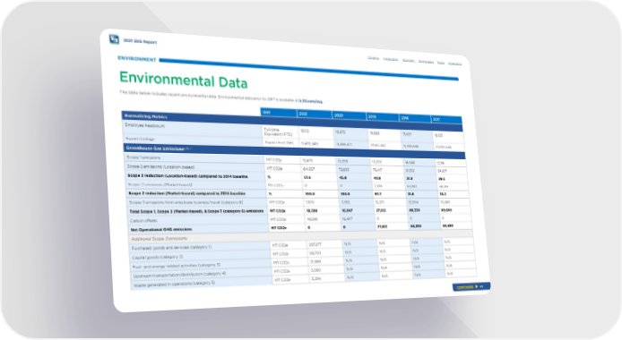 ENVIRONMENT 2021 ESG Report Contents Introduction Economic Environment Social Governance Environmental Data The table below includes recent environmental data. Environmental data prior to 2017 is available at ir.53.com/esg . Unit 2021 2020 2019 2018 2017 Normalizing Metrics Employee headcount Full-time Equivalent (FTE) 19,112 19,872 19,869 17,437 18,125 Square footage Square Feet (SF) 9,419,349 9,488,471 1 0,1 67, 362 9,399,846 10,092,544 Greenhouse Gas Emissions a, b, c Scope 1 emissions MT CO2e 12,479 12,995 13,233 14,046 12,116 Scope 2 emissions (Location-based) MT CO2e 64,927 72,695 79,417 91,519 94,617 Scope 2 reduction (Location-based) compared to 2014 baseline % 51.6 45.8 40.8 31.8 29.5 Scope 2 emissions (Market-based) MT CO2e 0 0 2,108 61,380 58,315 Scope 2 reduction (Market-based) compared to 2014 baseline % 100.0 100.0 97.7 31.8 35.2 Scope 3 emissions from employee business travel (category 6) MT CO2e 7,1 0 9 3,952 12,271 12,904 10,249 Total Scope 1, Scope 2 (Market-based), & Scope 3 (category 6) emissions MT CO2e 19,588 16,947 27, 612 88,330 80,680 Carbon ofsets MT CO2e 19,588 16,947 0 0 0 Net Operational GHG emissions MT CO2e 0 0 27, 612 88,330 80,680 Additional Scope 3 emissions: Purchased goods and services (category 1) MT CO2e 297, 27 7 N /A N /A N /A N /A Capital goods (category 2) MT CO2e 58,754 N /A N /A N /A N /A Fuel- and energy-related activities (category 3) MT CO2e 21,989 N /A N /A N /A N /A Upstream transportation/distribution (category 4) MT CO2e 3,060 N /A N /A N /A N /A Waste generated in operations (category 5) MT CO2e 3,294 N /A N /A N /A N /A CONTINUED 49