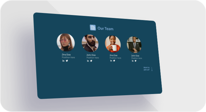 Our Team Jina Doe John Doe Jina Doe John Doe Position here Position here Position here Position here Want to join us?