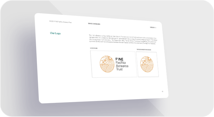 08 © 2021 F’INE Pasifika Aotearoa Trust BRAND GUIDELINES VERSION 1.1 The main element our logo is the our brand mark. The main element of the brand mark is the canoe (vaka), it is a representation of journey and discovery which resonates with the journey of a person seeking support. The design also incorporates the 5 elements - The Frigate Bird (Air), The Sun (Fire), The wavey lines (Water), The patterned quadrant (Earth) and the white space between the earth/water and the other elements (The sky/The Heavens). Our Logo F'INE Pasifika Aotearoa Trust LOGOMARK BRANDMARK/MONOGRAM