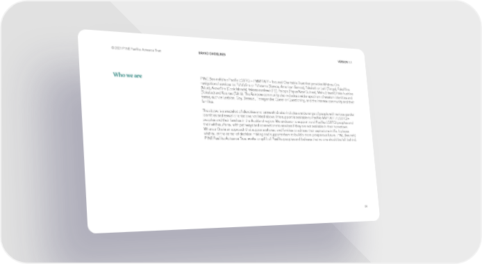 04 © 2021 F’INE Pasifika Aotearoa Trust BRAND GUIDELINES VERSION 1.1 F ʼ INE (fee-neh) is a Pacific LGBTQI+ / MVPFAFF+ focused Charitable Trust that provides Whānau Ora navigational services to: Fa ʼ afafine or Fa ʼ atama (Samoa, American Samoa), Fakaleiti or Leiti (Tonga), Fakafifine (Niue), Akava ʼ ine (Cook Islands), Vakasalewalewa (Fiji), Palopa (Papua New Guinea), Mahu (Hawaii) Haka huahine (Tokelau) and Rae rae (Tahiti). The Rainbow community also includes a wider spectrum of western identities and terms, such as Lesbian, Gay, Bisexual, Transgender, Queer or Questioning, and the Intersex community and their families. The above is a snapshot of identities and terms which also includes a wide range of people with various gender identities and sexual orientations not listed above.This support is available to Pasifika MVPFAFF / LGBTQI+ peoples and their families in the Auckland region. We endeavor to support rural Pasifika LGBTQI peoples and their whānau/fanau with pathways and connections to services if they are not available in their hometown. Whānau Ora is an approach that supports whānau and families to achieve their aspirations in life. It places whānau at the center of decision-making and supports them to build a more prosperous future. F’INE (fee.neh) F’INE Pasifika Aotearoa Trust works to uplift all Pasifika peoples and believes that no one should be left behind. Who we are