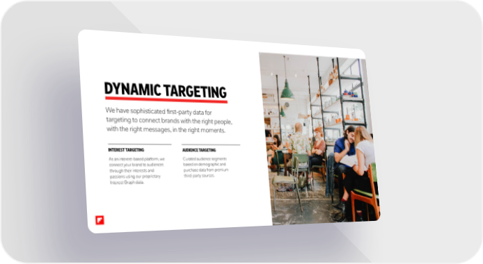 FLIPBOARD MEDIA KIT 5 DYNAMIC TARGETING We have sophisticated first-party data for targeting to connect brands with the right people, with the right messages, in the right moments. INTEREST TARGETING AUDIENCE TARGETING As an interest-based platform, we Curated audience segments connect your brand to audiences based on demographic and through their interests and purchase data from premium passions using our proprietary third-party sources. Interest Graph data.