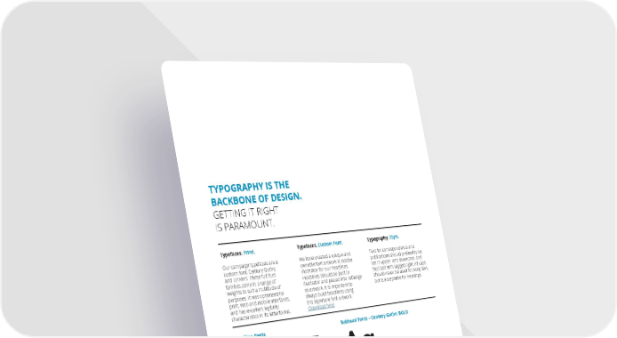 TYPOGRAPHY IS THE BACKBONE OF DESIGN. GETTING IT RIGHT IS PARAMOUNT. Typefaces. Print. Typefaces. Custom Font. Typography. Style. Our campaign typefaces are a We have created a unique and Text for correspondence and custom font, Century Gothic ownable font artwork in Adobe publications should preferably be and Univers. These full font Illustrator for our headlines. set in upper- and lowercase, and families come in a range of Headlines should be built in flush left with ragged right. All caps weights to suit a multitude of Illustrator and placed into InDesign should never be used for body text, purposes. It was optimized for as artwork. It is important to but is acceptable for headings. print, web and mobile interfaces, always build headlines using and has excellent legibility this signature font artwork. characteristics in its letterforms. (Download here) Headline Fonts Subhead Fonts – Century Gothic BOLD Aa ABCDEFGHIJKLMNOPQRSTUVWXYZ abcdefghijklmnopqrstuvwxyz (.,:;?!£$&@*) 0123456789 // Bold Body Copy Fonts – Univers Condensed Family Light ABCDEFGHIJKLMNOPQRSTUVWXYZ abcdefghijklmnopqrstuvwxyz ABCDEFGHIJKLMNOPQRSTUVWXYZ abcdefghijklmnopqrstuvwxyz Regular ABCDEFGHIJKLMNOPQRSTUVWXYZ abcdefghijklmnopqrstuvwxyz ABCDEFGHIJKLMNOPQRSTUVWXYZ abcdefghijklmnopqrstuvwxyz Bold ABCDEFGHIJKLMNOPQRSTUVWXYZ abcdefghijklmnopqrstuvwxyz ABCDEFGHIJKLMNOPQRSTUVWXYZ abcdefghijklmnopqrstuvwxyz BRAND GUIDELINES | 9