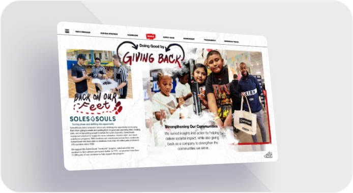 CEO’S MESSAGE OUR ESG STRATEGY DASHBOARD PEPEOOPLPLEE SUPPLY CHAIN ENVIRONMENT TRANSPARENCY REFERENCE TABLES Doing Good by Soles4Souls turns unwanted shoes and clothing into opportunity by keeping Strengthening Our Communities them from going to waste and putting them to good use: providing relief, creating jobs, and empowering people to break the cycle of poverty. Soles4Souls We turned insights into action by helping repurposes product to supply its micro-enterprise, disaster relief, and direct assistance programs. With locations and warehouses across three continents, deliver societal impact, while also giving Soles4Souls has been able to distribute more than 40 million pairs of shoes in 129 countries since 2006. back as a company to strengthen the We support the Soles4Souls “4everyKid” program, which provides new sneakers to kids without permanent shelter. In FY21, we provided more than communities we serve. 11,000 pairs of new sneakers to help support this program. 2727