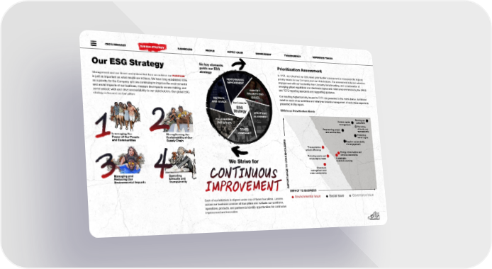 CEO’S MESSAGE OUR ESG STRATEGY DASHBOARD PEOPLE SUPPLY CHAIN ENVIRONMENT TRANSPARENCY REFERENCE TABLES Our ESG Strategy Six key elements Prioritization Assessment guide our ESG strategy In FY21, we refreshed our ESG issue prioritization assessment to reconsider the highest Management and our Board understand that how we achieve our PURPOSE priority issues for our Company and our stakeholders. The assessment included extensive PERFORMANCE engagement with our leadership team, industry benchmarking, and consideration of is just as important as what results we achieve. We have long established ESG IMPROVEMENT emerging global regulations and disclosure topics and metrics recommended by the SASB as a priority for the Company and are continuing to improve the environmental and TCFD reporting standards and supporting guidance. and social impacts of our business, measure the impacts we are making, and IDENTIFY communicate with and drive accountability to our stakeholders. Our global ESG PRIORITY ESG Our resulting highest priority issues for FY21 are presented in the matrix below. Additional strategy is focused on four pillars: METRICS ISSUES detail on each of our activities and initiatives towards management of each these aspects is AND GOALS presented in this report. ESG ESG Issue Prioritization Matrix Strategy STRATEGIC ALIGNMENT Ser€in o r POLICIES AND H man apita stomers INITIATIVES manaement Operatin Empoerin peope etiay an BOARD an omm nities transparenty Leveraging the Strengthening the OVERSIGHT Protetin Power of Our People Sustainability of Our man rits and Communities Supply Chain S ppier s stainaiity an enaement Transportation system effiieny Enery onser€ation an Re in aste an imate stearsip eno rain re se S stainae We Strive for materias so rin Cemias manaement an Managing and Operating ater stearsip Reducing Our Ethically and Environmental Impacts Transparently IMPORTANCE TO STAKEHOLDERS IMPACT TO BUSINESS Each of our initiatives is aligned under one of these four pillars. Leaders Environmental issue Social issue Governance issue across our business consider all four pillars and evaluate our workforce, operations, products, and partners to identify opportunities for continuous improvement and innovation. 99