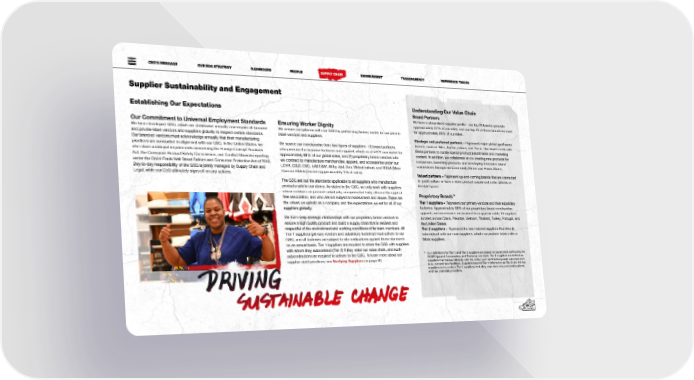 CEO’S MESSAGE OUR ESG STRATEGY DASHBOARD PEOPLE SUPPLY CHAIN ENVIRONMENT TRANSPARENCY REFERENCE TABLES Supplier Sustainability and Engagement Establishing Our Expectations Understanding Our Value Chain Brand Partners We have a streamlined supplier profile—our top 20 brands generate Our Commitment to Universal Employment Standards Ensuring Worker Dignity approximately 97% of our sales, and our top 10 of those brands account We have developed GSG, which are distributed annually and require all branded We ensure compliance with our GSG by performing factory audits for our private- for approximately 80% of our sales. and private-label vendors and suppliers globally to respect certain standards. label vendors and suppliers. Strategic and preferred partners – Represent major global sportswear Our branded vendors must acknowledge annually that their manufacturing brands, such as Nike, Jordan, adidas, and Puma. Our buyers work with practices are conducted in alignment with our GSG. In the United States, we We source our merchandise from two types of suppliers—(1) brand partners, also share additional requirements concerning the Foreign Corrupt Practices who produce the branded footwear and apparel, which as of FY21 accounted for these partners to curate special product assortments and marketing Act, the Consumer Product Safety Commission, and Conflict Minerals reporting approximately 99% of our global sales, and (2) proprietary brand vendors who content. In addition, we collaborate on co-creating new products for under the Dodd-Frank Wall Street Reform and Consumer Protection Act of 2010. we contract to manufacture merchandise, apparel, and accessories under our consumers, launching products, and developing immersive brand Day-to-day responsibility of the GSG is jointly managed by Supply Chain and LCKR, COZI, CSG, EASTBAY, All by Just Don, Melodi Eshani, and MTAA (More connections through our Community Stores and Power Stores. Legal, while our CEO ultimately signs off on any actions. Than an Athlete) brands (approximately 1% of sales). Valued partners – Represent up-and-coming brands that are connected The GSG set out the standards applicable to all suppliers who manufacture to youth culture or have a niche product assortment in the athletic or products sold in our stores. As stated in the GSG, we only work with suppliers lifestyle space. whose workers are present voluntarily, compensated fairly, allowed the right of Proprietary Brands16 free association, and who are not subject to harassment and abuse. These are the values we uphold as a company and the expectations we set for all of our Tier 1 suppliers – Represent our primary vendors and their subsidiary suppliers globally. factories. Approximately 80% of our proprietary brand merchandise, apparel, and accessories are sourced from approximately 10 suppliers We form deep strategic relationships with our proprietary brand vendors to located across China, Pakistan, Vietnam, Thailand, Turkey, Portugal, and ensure a high quality product and build a supply chain that is resilient and the United States. respectful of the environment and working conditions of its team members. All Tier 2 suppliers – Represent the raw material suppliers that directly Tier 1 suppliers (primary vendors and subsidiary factories) must adhere to our subcontract with our main suppliers, which may include fabric mills or GSG, and all factories are subject to site verifications against these standards fabric suppliers. on an annual basis. Tier 1 suppliers are required to share the GSG with suppliers with whom they subcontract (Tier 2) if they enter our value chain, and such 16 subcontractors are required to adhere to the GSG. To learn more about our Our definitions for Tier 1 and Tier 2 suppliers are based on parameters defined by the supplier audit practices, see Verifying Suppliers on page 40. SASB Apparel, Accessories, and Footwear standard. Tier 1 suppliers are defined as suppliers that transact directly with the entity, such as finished goods manufacturers (e.g., cut and sew facilities). Suppliers beyond Tier 1 (referred to as Tier 2) are the key suppliers to the entity’s Tier 1 suppliers, including manufacturers, processing plants, and raw materials providers. 3939