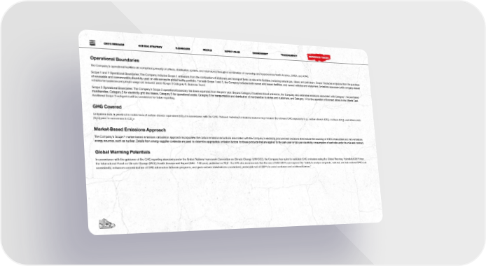 CEO’S MESSAGE OUR ESG STRATEGY DASHBOARD PEOPLE SUPPLY CHAIN ENVIRONMENT TRANSPARENCY REFERENCE TABLES Operational Boundaries The Company’s operational facilities are comprised primarily of offices, distribution centers, and retail stores through a combination of ownership and leases across North America, EMEA, and APAC. Scope 1 and 2 Operational Boundaries: The Company includes Scope 1 emissions from the combustion of stationary and transport fuels on-site at its facilities, including natural gas, diesel, and petroleum. Scope 2 includes emissions from the purchase of renewable and nonrenewable electricity used on-site across its global facility portfolio. For both Scope 1 and 2, the Company includes both owned and leased facilities, and owned vehicles and equipment. Emissions associated with company-leased vehicles for business and private usage are included under Scope 3 Category 6, Business Travel. Scope 3 Operational Boundaries: The Company’s Scope 3 operational boundary has been expanded from the prior year. Beyond Category 6 business travel emissions, the Company also estimates emissions associated with Category 1 for purchased merchandise, Category 3 for electricity grid line losses, Category 5 for operational waste, Category 9 for transportation and distribution of merchandise to stores and customers, and Category 14 for the operation of licensed stores in the Middle East. Additional Scope 3 categories will be considered for future reporting. GHG Covered Emissions data is provided in metric tons of carbon dioxide equivalent (CO e) in accordance with the GHG Protocol. Individual emissions sources may measure the relevant GHG separately (e.g., carbon dioxide (CO ), methane (CH ), and nitrous oxide 2 2 4 (N O) prior to conversion to CO e. 2 2 Market-Based Emissions Approach The Company’s Scope 2 market-based emissions calculation approach incorporates the carbon emission reductions associated with the Company’s electricity procurement decisions that include the sourcing of 100% renewables and zero-emissions energy sources, such as nuclear. Details from energy supplier contracts are used to determine appropriate emission factors for these products that are applied to the part-year or full-year electricity consumption of each site under the relevant contract. Global Warming Potentials In accordance with the guidance of the GHG reporting standards under the United Nations Framework Convention on Climate Change (UNFCCC), the Company has opted to calculate GHG emissions using the Global Warming Potentials (GWP) from the International Panel on Climate Change (IPCC) Fourth Assessment Report (AR4 – 100 year), published in 2007. The EPA also recommends that the use of AR4 GWPs can improve the “ability to analyze corporate, national, and sub-national GHG data consistently, enhances communication of GHG information between programs, and gives outside stakeholders a consistent, predictable set of GWPs to avoid confusion and additional burden.” 6868