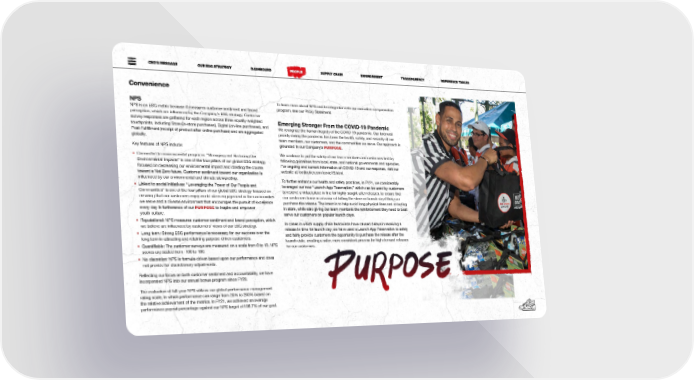 CEO’S MESSAGE OUR ESG STRATEGY DASHBOARD PEOPLE SUPPLY CHAIN ENVIRONMENT TRANSPARENCY REFERENCE TABLES Convenience NPS To learn more about NPS and its integration into our executive compensation NPS is an ESG metric because it measures customer sentiment and brand program, see our Proxy Statement. perception, which are influenced by the Company’s ESG strategy. Customer survey responses are gathered for each region across three equally-weighted Emerging Stronger From the COVID-19 Pandemic touchpoints, including Store (in-store purchases), Digital (on-line purchases), and We recognize the human tragedy of the COVID-19 pandemic. Our foremost Post-Fulfillment (receipt of product after online purchase) and are aggregated priority during the pandemic has been the health, safety, and security of our globally. team members, our customers, and the communities we serve. Our approach is Key features of NPS include: grounded in our Company’s PURPOSE. • Connected to environmental programs: “Managing and Reducing Our We continue to put the safety of our team members and customers first by Environmental Impacts” is one of the four pillars of our global ESG strategy following guidelines from local, state, and national governments and agencies. focused on decreasing our environmental impact and charting the course For ongoing and current information on COVID-19 and our response, visit our toward a Net Zero future. Customer sentiment toward our organization is website at footlocker.com/covid19.html. influenced by our environmental and climate stewardship. To further enhance our health and safety practices, in FY21, we considerably • Linked to social initiatives: “Leveraging the Power of Our People and leveraged our new “Launch App Reservation,” which can be used by customers Communities” is one of the four pillars of our global ESG strategy focused on to reserve a virtual place in line for highly sought-after releases, to ensure that ensuring that our customers enjoy world-class engagement in the communities our customers know in advance of hitting the store on launch day if they can we serve and a diverse environment that encourages the pursuit of excellence purchase the release. The intent is to help avoid long physical lines and crowding every day in furtherance of our PURPOSE to inspire and empower in store, while also giving our team members the reinforcement they need to best youth culture. serve our customers on popular launch days. • Reputational: NPS measures customer sentiment and brand perception, which In cases in which supply chain headwinds have caused delays in receiving a we believe are influenced by customers’ views of our ESG strategy. release in time for launch day, we have used a Launch App Reservation to safely • Long term: Strong ESG performance is necessary for our success over the and fairly provide customers the opportunity to purchase the release after the long term in attracting and retaining purpose-driven customers. launch date, creating a safer, more consistent process for high demand releases • Quantifiable: The customer surveys are measured on a scale from 0 to 10. NPS for our customers. scores are scaled from -100 to 100. • No discretion: NPS is formula-driven based upon our performance and does not provide for discretionary adjustments. Reflecting our focus on both customer sentiment and accountability, we have incorporated NPS into our annual bonus program since FY20. The evaluation of full-year NPS utilizes our global performance management rating scale, in which performance can range from 25% to 200% based on the relative achievement of the metrics. In FY21, we achieved an average performance payout percentage against our NPS target of 106.7% of our goal. 2121
