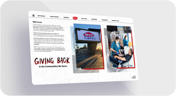 CEO’S MESSAGE OUR ESG STRATEGY DASHBOARD PEOPLE SUPPLY CHAIN ENVIRONMENT TRANSPARENCY REFERENCE TABLES WSS Cares! In FY21, WSS team members, through our WSS Cares! initiative, partnered with the International WeLoveU Foundation and LifeStream Blood Bank to activate a community blood drive outreach program at LAFC’s Banc of California Stadium in Los Angeles, California, as well as a blood drive at AT&T Stadium in Dallas, Texas. The blood drives were huge successes. Local English- and Spanish-speaking media outlets covered the collection of an aggregate of over 1,550 units of blood, which equated to over 4,700 lives saved. WSS Cares! goes above and beyond selling sneakers and apparel to truly give back to the communities we serve. WSS is proud to sponsor activities like these in the markets we serve. Other previous WSS Cares! initiatives include coordinated toy giveaways and free haircuts and styling. WSS also participated in several much-needed backpack giveaways in the markets we serve. In all, WSS donated over 6,000 backpacks to school districts, charitable organizations and underprivileged kids that are apart of youth sport organizations. to the Communities We Serve 1717