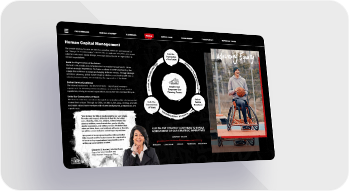 CEO’S MESSAGE OUR ESG STRATEGY DASHBOARD PEPEOOPLPLEE SUPPLY CHAIN ENVIRONMENT TRANSPARENCY REFERENCE TABLES Human Capital Management Our people strategy focuses on three key priorities, which are underpinned by Build the our “Always-On Transformation” mindset. We are agile and adaptable, and as our Organization external customers’ needs change, we adapt and evolve as an organization to of the Future exceed expectations. A L W N A O Y Build the Organization of the Future TI S A O We build critical skills and competencies that enable the business to deliver M N R TR against strategic imperatives. We foster a culture of continuous learning that O A F equips the workforce to adapt as changing skills are needed. Through strategic NS N workforce planning, global culture shaping initiatives, and leading with data to A SF R O T R unlock decision making, we are building the organization of the future. N M O A S T Deliver Service Excellence Y I O Our internal customers—our team members—expect great employee A W Inspire and N experiences. In delivering service excellence, we elevate the team member LA Empower Our experience, driving to exceed expectations across the team member lifecycle. Thriving Teams Unite Our Communities of Talent Deliver We strive to unite team members through their similarities while celebrating what Service Unite Our makes them unique. Through our DIBs, we attract, hire, grow, develop, promote, Excellence Communities and retain valued team members with diverse backgrounds, perspectives, and of Talent experiences. N OIT LA A MR O S YA W “Our strategy for DIBs is fundamental to our core values. F SN ART NO We value and respect all facets of diversity, including race, ethnicity, color, sex, religion, national origin, age, physical abilities, sexual orientation, gender identify, gender expression, and military service. We believe that when we listen, learn, and celebrate all facets of diversity, OUR TALENT STRATEGY CONTINUES TO ENABLE we will be a more inclusive and stronger organization. ACHIEVEMENT OF OUR STRATEGIC IMPERATIVES I am proud of our progress together with our Global DIBs Council and the leaders across the organization COMPANY VALUES to focus on key organizational opportunities and in uniting our communities of talent.” INTEGRITY LEADERSHIP SERVICE TEAMWORK INNOVATION Elizabeth S. Norberg (she/her/hers) Executive Vice President and Chief Human Resources Officer 28282828