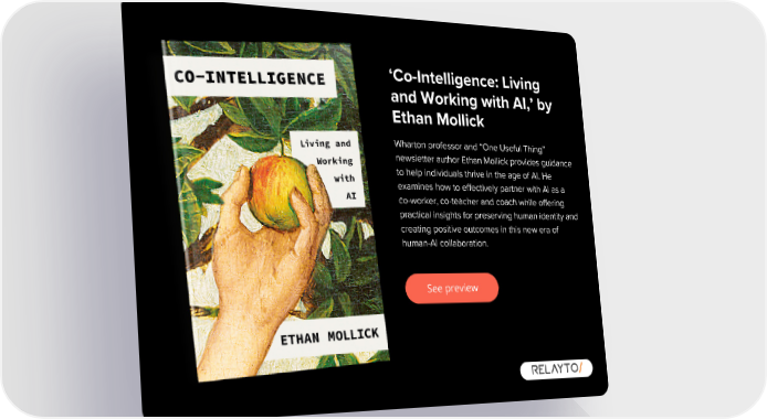 ‘Co-Intelligence: Living and Working with AI,’ by Ethan Mollick Wharton professor and “One Useful Thing” newsletter author Ethan Mollick provides guidance to help individuals thrive in the age of AI. He examines how to effectively partner with AI as a co-worker, co-teacher and coach while offering practical insights for preserving human identity and creating positive outcomes in this new era of human-AI collaboration. See preview