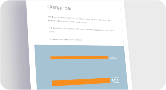 MW-Ford_Brand_21-59.qxp 21/7/06 4:34 pm Page 54 Orange bar All full-colour communications must carry an orange bar, either at the top of the page or at the top of the communications area. The depth of the bar must be 1/4 ‘X’, except for outdoor posters where it becomes 1/2 ‘X’. ‘X’ denotes the height of the Ford Oval. 1/4 X 1/2 X 5454