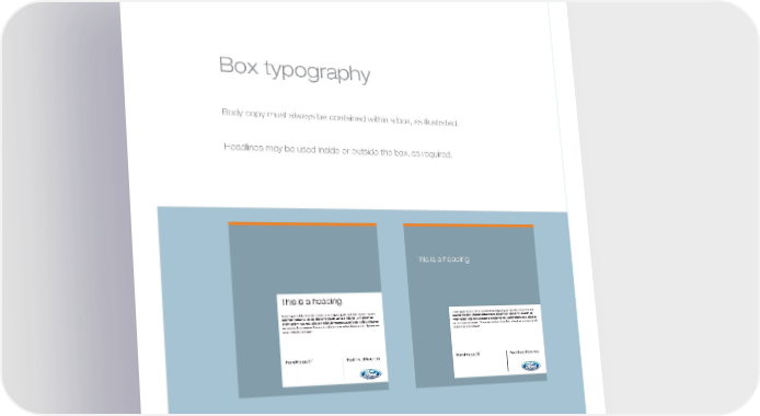 MW-Ford_Brand_21-59.qxp 21/7/06 4:32 pm Page 50 Box typography Body copy must always be contained within a box, as illustrated. Headlines may be used inside or outside the box, as required. This is a heading This is a heading Lorem ipsum dolor sit amet, consectetuer adipiscing elit, sed diam nonummy nibh Lorem ipsum dolor sit amet, consectetuer adipiscing elit, sed diam nonummy nibh euismod tincidunt ut laoreet dolore magna aliquam erat volutpat. Ut wisi enim ad euismod tincidunt ut laoreet dolore magna aliquam erat volutpat. Ut wisi enim ad minim veniam, quis nostrud exerci tation ullamcorper suscipit lobortis nisl ut aliquip ex minim veniam, quis nostrud exerci tation ullamcorper suscipit lobortis nisl ut aliquip ex ea commodo consequat. Duis autem vel eum iriure dolor in hendrerit in vulputate velit ea commodo consequat. Duis autem vel eum iriure dolor in hendrerit in vulputate velit esse molestie consequati. esse molestie consequati. FordFocus ST Feel the difference FordFocus ST Feel the difference 50