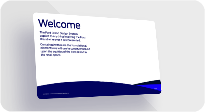Welcome The Ford Brand Design System applies to anything involving the Ford Brand wherever it is represented. Contained within are the foundational elements we will use to continue to build upon the equities of the Ford Brand in the retail space. CONFIDENTIAL © 2021 Ford Motor Company. All Rights Reserved. Home DRAFT 05 DRAFT 05