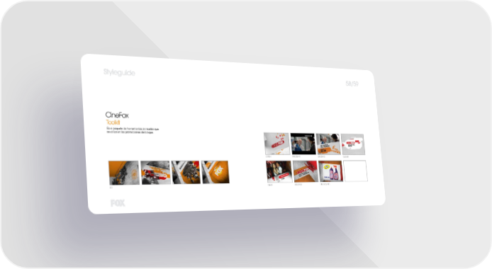 FOX Brand Book Page 30 Page 32guide 58/59 Style CineFox Toolkit Es el paquete de herramientas animadas que se utiliza en las promociones del bloque. OPEN INFOBAR ENDTAG CLOSE ID NEXT BUMPER BILLBOARD