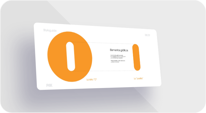 Styleguide 28/29 Elementos gráficos Los elementos gráficos usados en el paquete de Fox son: la letra “O” y su contraforma (la “pastilla”.) Estos elementos le dan dinamismo y soltura a la marca. La letra “O” La “pastilla”