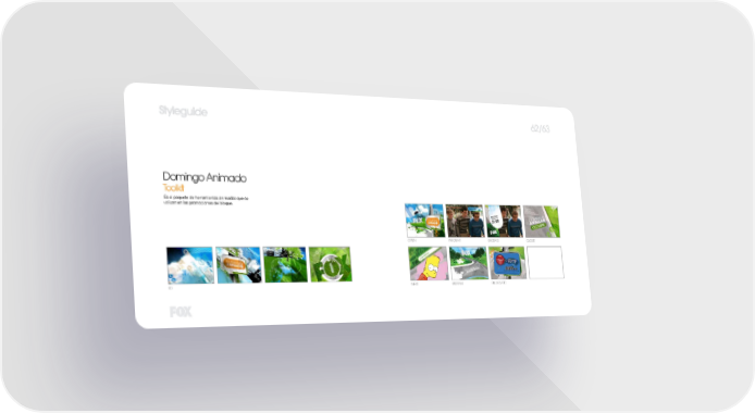 FOX Brand Book Page 32 Page 3462/63 Domingo Animado Toolkit Es el paquete de herramientas animadas que se utilizan en las promociones del bloque. OPEN INFOBAR ENDTAG CLOSE ID NEXT BUMPER BILLBOARD