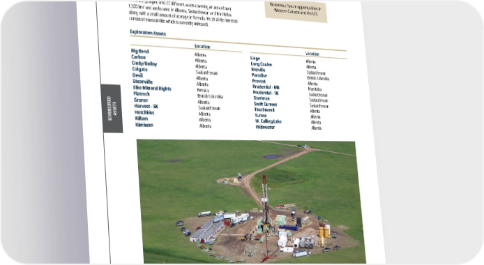 2022 ASSET HANDBOOK 126 FNV TSX NYSE DIVERSIFIED ASSETS Energy Exploration Assets AB / MB / SK, Canada & Nevada, U.S. Operator: Various Royalties : 0.1-18% and WI: 2-100% Energy In addition to its producing assets, Franco-Nevada has exposure to a portfolio of undeveloped, non-producing oil & gas interests. These are grouped into 27 different assets covering an area of over 1,500 km 2 and are located in Alberta, Saskatchewan and Manitoba along with a small amount of acreage in Nevada. Much of the interests consist of mineral title which is currently unleased. Exploration Assets Location Big Bend Alberta Carbon Alberta Cindy/Belloy Alberta Colgate Saskatchewan Devil Alberta Dixonville Alberta Elko Mineral Rights Nevada Flatrock British Columbia Granor Alberta Harvest - SK Saskatchewan Hotchkiss Alberta Killam Alberta Kimiwan Alberta Location Liege Alberta Long Coulee Alberta Melville Saskatchewan Paradise British Columbia Provost Alberta Prudential - MB Manitoba Prudential - SK Saskatchewan Steelman Saskatchewan Swift Current Saskatchewan Touchwood Alberta Turner Alberta W. Calling Lake Alberta Widewater Alberta Numerous future opportunities in Western Canada and the U.S. Energy–Canada/U.S. Drill rig near Weyburn, Saskatchewan