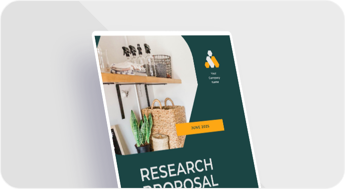 PROJECT AND INITIATIVE VALUE PERCEN TAGE Outsource third - party advertising team $456,000 44% Research and development $456,000 44% Staff expansion and onboarding $123,000 12% TOTAL $1,035,00 0 100% 08 RESEARCH PROPOSAL PROPOSED BUDGET For fiscal 2026 projects Project proposals are outlines that describe the steps being taken to complete a project. It can be used in practically any industry, as long as it contains all the important details. This includes the research behind the project, the basic idea and its relationship to the brand, and what needs to be implemented to achieve the project. A good way to start your project proposal is by summarizing your idea. List the reasons behind it, the people involved, your own involvement, and how much the overall project will cost. Add your objectives and pay particular attention to the problems you’re trying to solve with your idea. YOUR COMPANY NAME