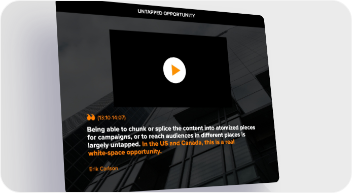 Being able to chunk or splice the content into atomized pieces for campaigns, or to reach audiences in different places is largely untapped. In the US and Canada, this is a real white-space opportunity. UNTAPPED OPPORTUNITY (13:10-14:07) 1. Domestic & General started out over 100 years ago, ensuring cattle and sheep rights. So not long after the Titanic went down there was a need all of a sudden to have protection and insurance on your livestock. Erik Carlson